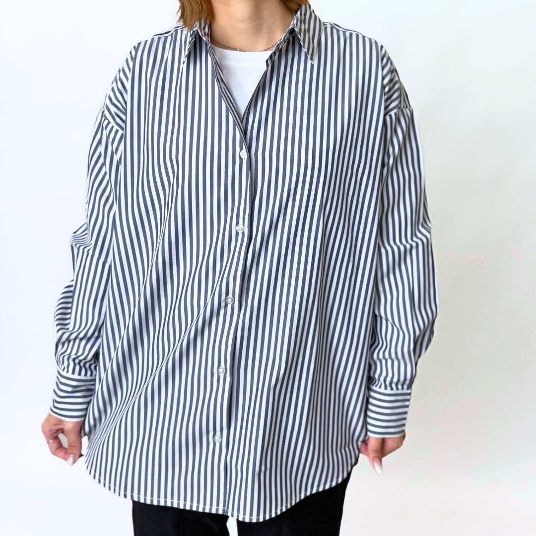 ゆったりとしたシルエットのオーバーサイズシャツ。